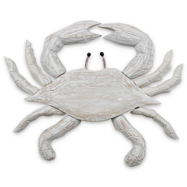 Crab Small. Our small wall crab features the weathered look of wood washed by the sea. Carefully and lovingly handcarved wooden wall crab measures 12x9x1.